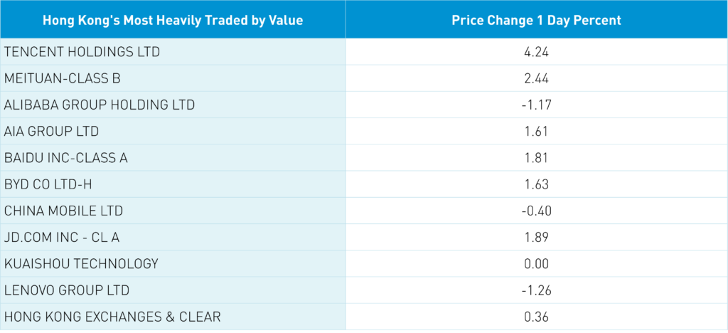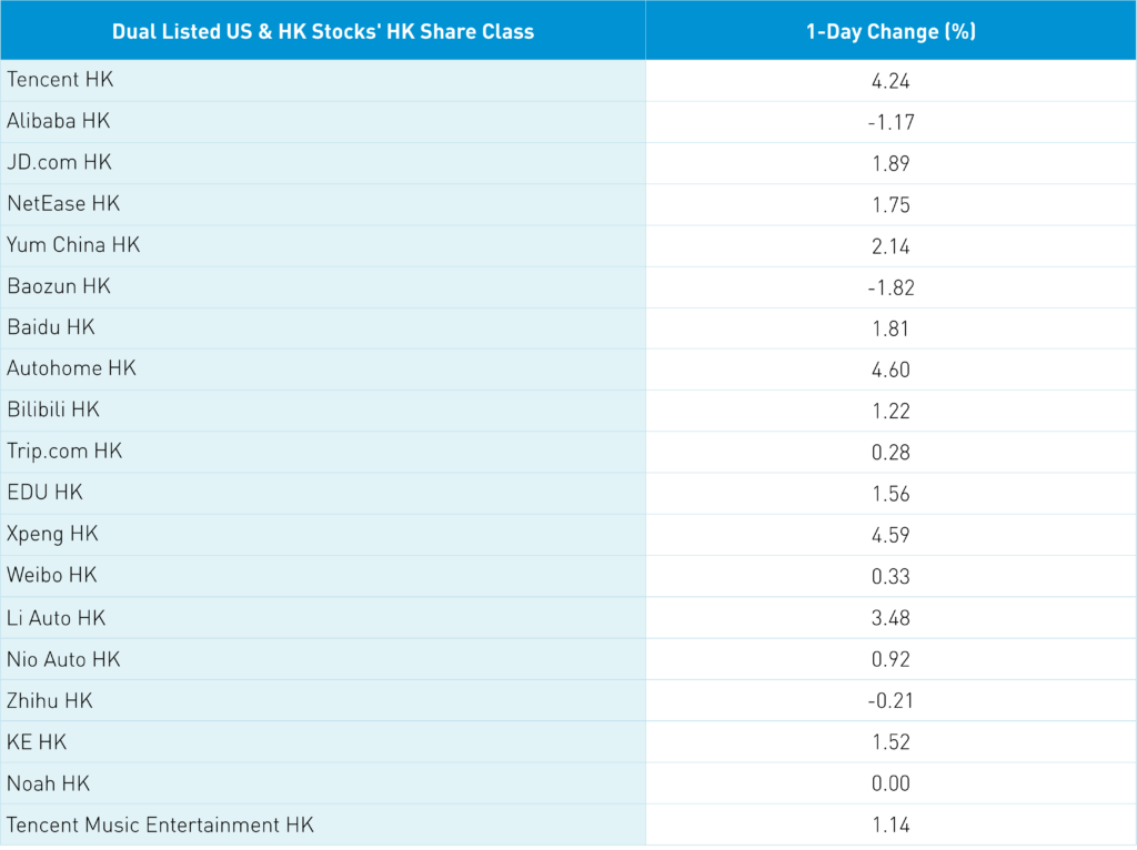 Alibaba’s announcement came after the local close as Hong Kong’s most heavily traded stocks were Tencent, which gained +4.24%, Meituan, which gained +2.44%, Alibaba, which fell -1.17%, AIA, which gained +1.61%, and Baidu, which gained +1.81%. It was a light night for Hong Kong news as Baidu provided access to its ERNIE chat bot, garnering positive feedback. Meanwhile, it was another strong day of Mainland investors buying Hong Kong stocks via Southbound Stock Connect as Tencent and Meituan saw outsized buying.